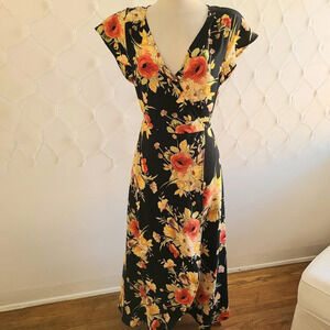 Sanctuary Wrap Dress Black / Floral / Ruffles Frilly / Size Small