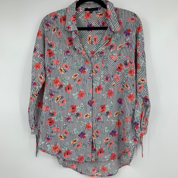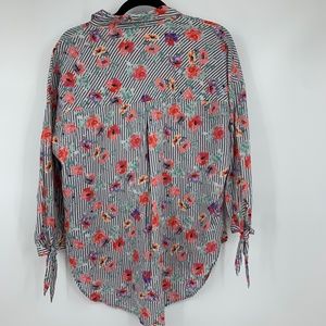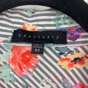 Sanctuary XS top blouse button front floral stripes light weight casual