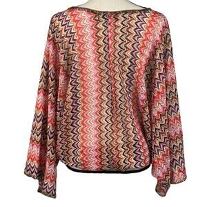 Sanctuary X-Small Poncho Top Oversized Dolman 3/4 Sleeve Semi-Sheer Tasseled