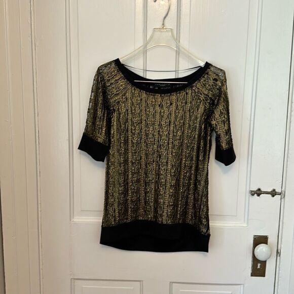 Sanctuary black and gold short sleeved dressy top