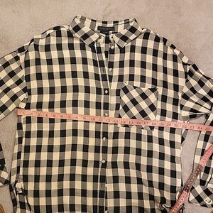 perfect condition no flaws. sanctuary button down. black cream plaid. size small but oversized, will fit med.
