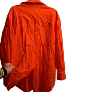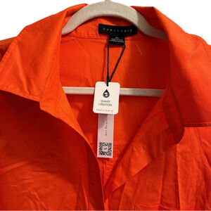 Orange, button down with cute hip vent detail and tuxedo style opening in the back. NWT. Front pocket on left chest panel. Sorry, wrinkles come free!