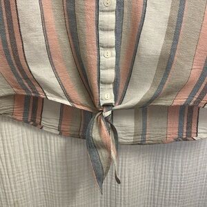 Button up blouse by Sanctuary. Ties in front 15% linen Excellent condition Soft pastel stripes