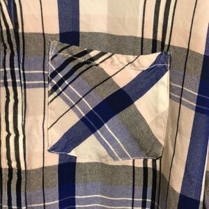 Great feel to this long sleeved button down top by sanctuary. XS. White/light pearl pink/blue/ black.