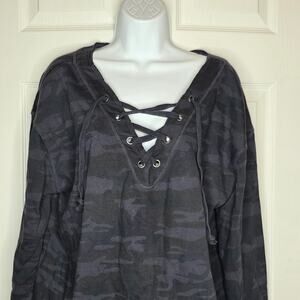 Sanctuary by Anthropologie Navy Camo Lace Up Sweatshirt Sz XL