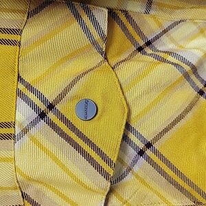 Sanctuary by Anthropologie long sleeve snap front shirt sz small. Yellow plaid, front snap pockets. 40" chest (SH-016)