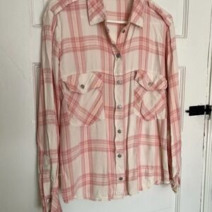 Sanctuary pink plaid boyfriend shirt snap button closure button down top S