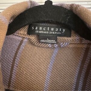 Sanctuary plaid flannel SHACKET Button Down Shirt Jacket COTTON women L
