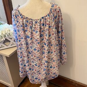 Sanctuary red white blue floral long split sleeve blouse Size L New
