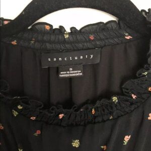 Black sanctuary size small blouse. Loose and flattering. Ruffles around. The neck and shoulder. Cinching across chest, see photos for these beautiful details! Never worn