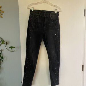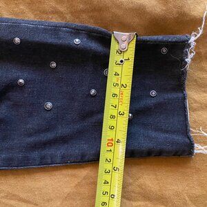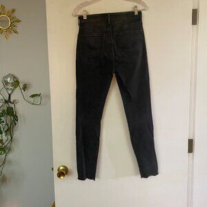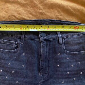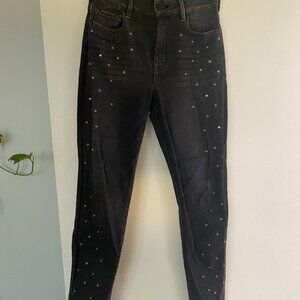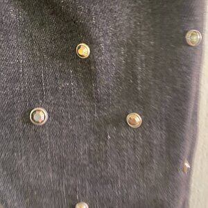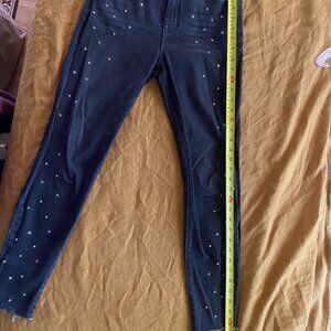 These charcoal skinny jeans are in very good pre-loved shape. The ankle is frayed by design. Note that there are 2 crystals missing (see picture). 77% cotton 20% Lyocell 3% spandex
