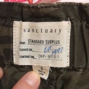 Sanctuary standard surplus camo sz S shorts. 14.5” waist, 11” rise, 15” length