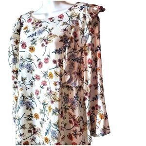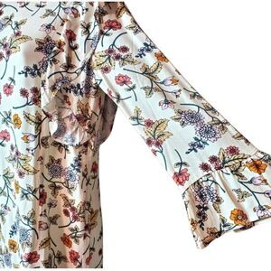 Sanctuary white background with floral pattern 3/4 sleeves and flutter at bodice