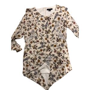 Sanctuary white background with floral pattern 3/4 sleeves and flutter at bodice sides. Fully lined size M. Hidden zip back closure.