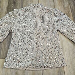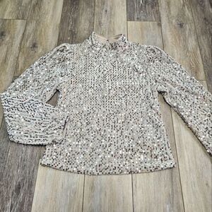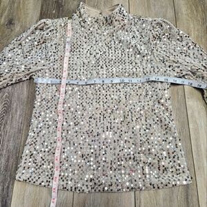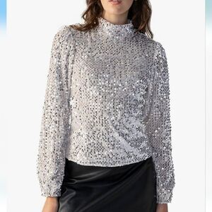 Sanctuary All Nighter Sequin Mock Neck Blouse Women's Small