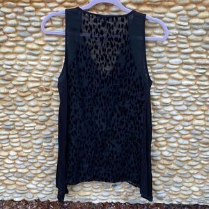 Sanctuary Black Drapy Party Tank. Size Small. Excellent Pre-Owned Condition! Perfect Day to Night Tank, amazing to layer with jean jackets, sweaters, blazers or just on its own! Velvet burn-out fabric. Velvet burn-out fabric. Semi sheer on the back. Ships from a smoke and pet free home?