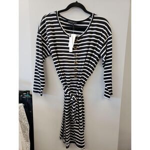 Sanctuary Black/White Dress Self-Tie Button XS NWT