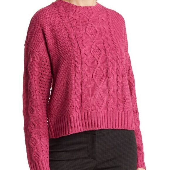Sanctuary Cable Knit Sweater. Cozy in a bold magenta color. Staple piece that can be worn with practically everything.