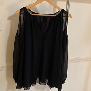 Gorgeous sheer pleated Sanctuary blouse with could shoulder cut outs; gently worn