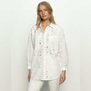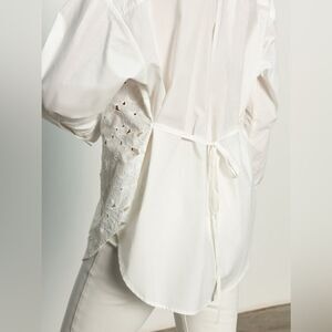 Sanctuary Lace Boyfriend Tie Back White Shirt | Size Small