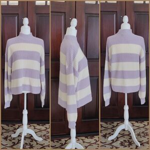 Sanctuary Sweet Tooth Stripe Sweater. Striped sweaters are a perennial fave, and this version knit with blouson sleeves, a mock-neck and a French-tuckable style is the way to wear one now. Size medium & XXL available. New with tag.