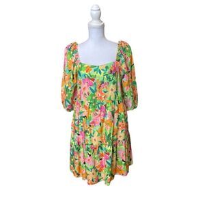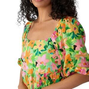 This bold floral babydoll dress from Sanctuary is updated with seams at the waist and a bottom dress flounce.