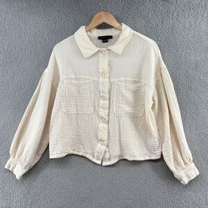 Sanctuary Women’s Gauze Button Down Shirt Cream Ivory Small Boho Casual