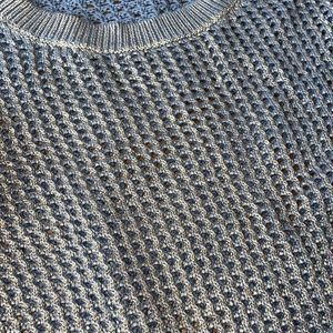 Great condition Knitted sweater Gold color on top of gray Stretchy material