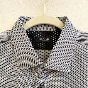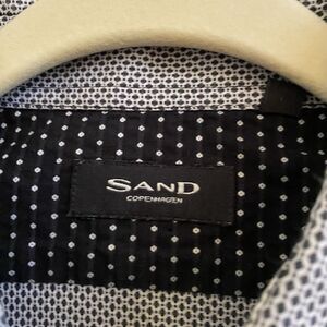 Sand Copenhagen Mens 44 US Large Casual Shirt Button Up Black White 100% Cotton