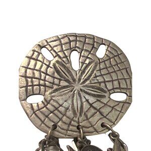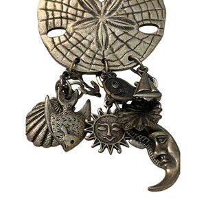 Sand Dollar Charm Brooch Nautical Celestial Dangling Charms Silver Tone 3.5"