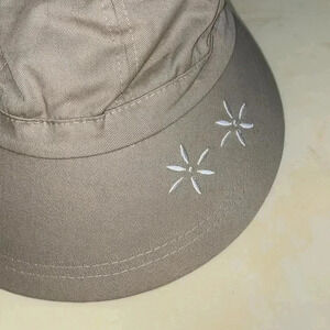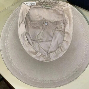 Anti-UV, Wide, Big Bill, Elastic Band in back to pull a pony tail thru, Yeah!, Nice lining, Khaki color, Perfect ๐ for the Beach ๐ with the sand dollars ๐ธ.