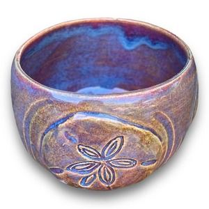 Sand Dollar Pink & Blue Stoneware Pottery Planter/Sea Shell Lover Gift 4x4”