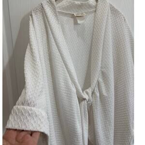 Sand Dollar Women M/L White Textured Vacation Spa Robe Tie In Front