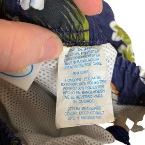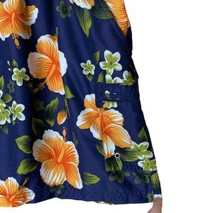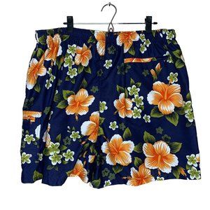 Sand N Sun Swim Trunks Hawaiian Floral Print Navy Blue Orange Lined Pockets 2XL