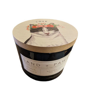 Sand + Paws GUAVA MANGO Cat-Themed Candle with Wooden Lid