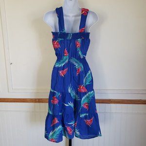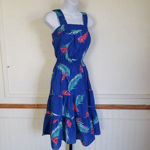 Sand Pebble of Hawaii Womens Sundress Small Blue Anthurium Print 70s USA