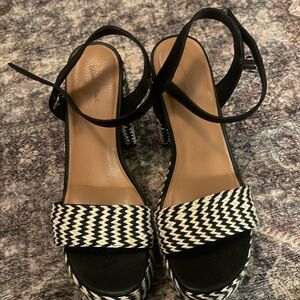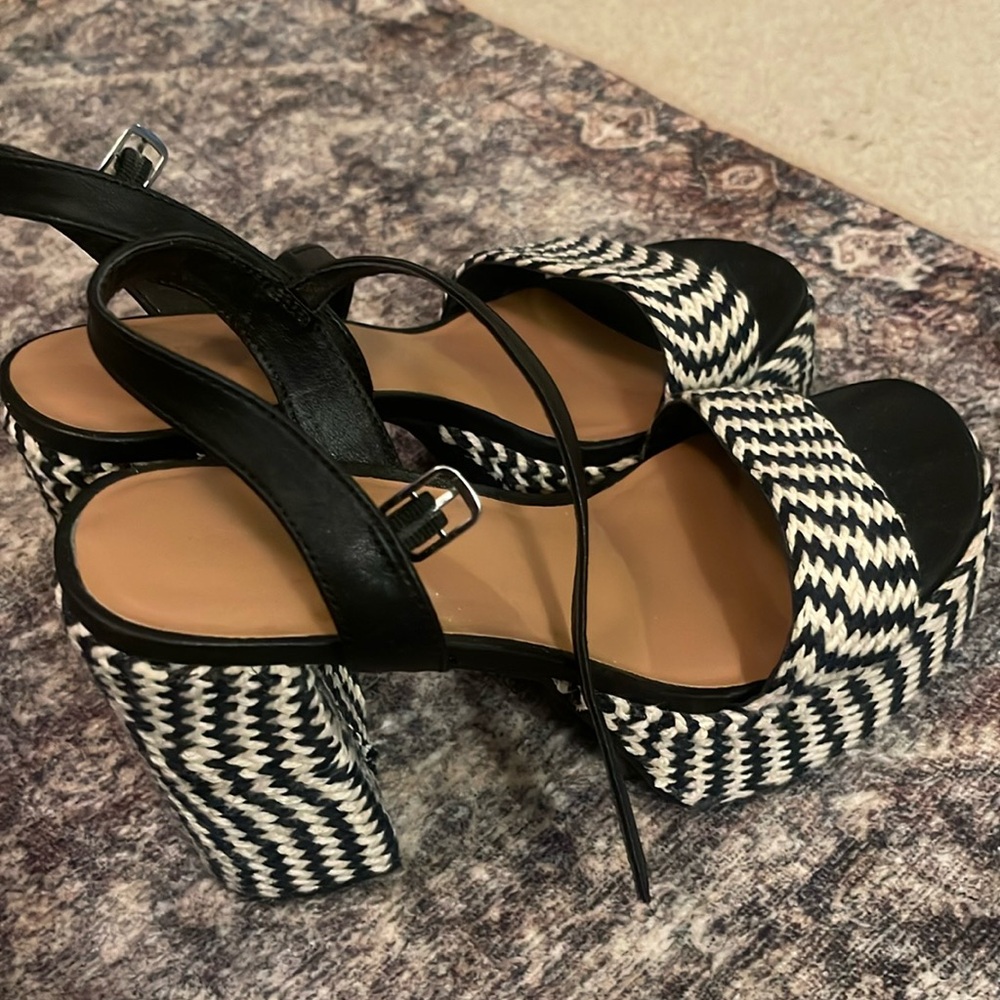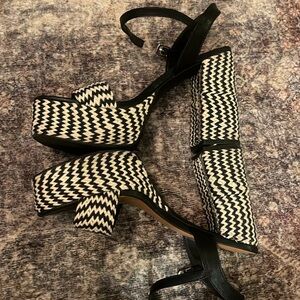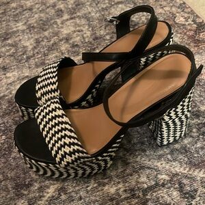 Black and cream woven. Chunk heel. Worn once.