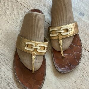 Women coach sandal gold leather with chain