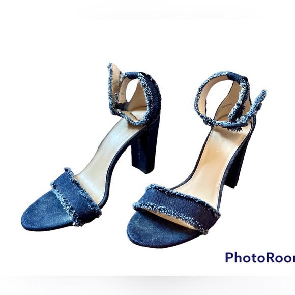 Sandal Denim Blue Jean Strappy Block Heel Size 7.5 Pella Moda