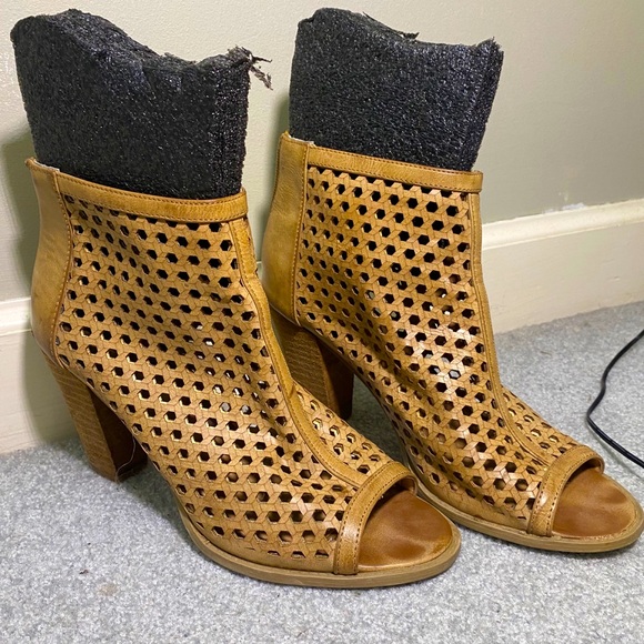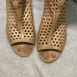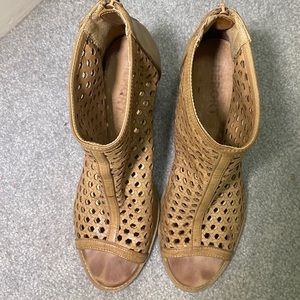 Very cute and fun summer heals! Brown, size 9 in good condition. Right heel has a slight tear