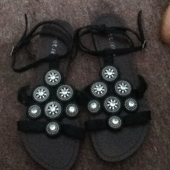 Wet seal sandals with black straps and rhinestones on the top ..worn once