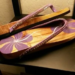 Wood flowered sandals