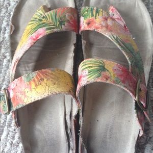White mountain sandals; worn few times. Has wear and tear look at pics. Buckles adjustable. Size: 8