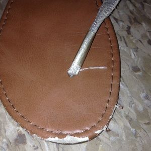 Never worn but got smushed from being stored away but these are the perfect sandals and look good with almost everything , flaws are shown in the 3rd picture
