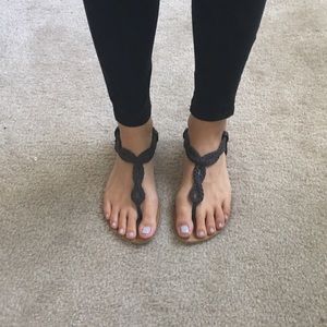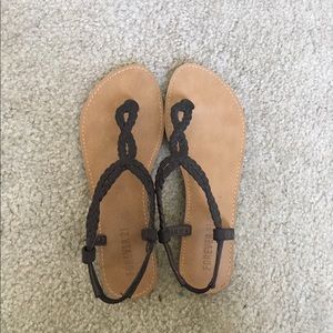 Brown Forever 21 sandals. Braid design with elastic and at the back. Rarely worn. Still in good condition aside from the normal wear on the bottom. Doesn't state size on shoe but I'm a size 7.
