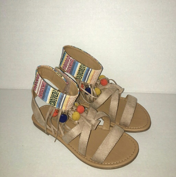 New colorful ankle gladiator suede sandals. Perfect for a festive occasion. Ankle buckle closure