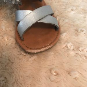Silver sandals with some wear on toes
