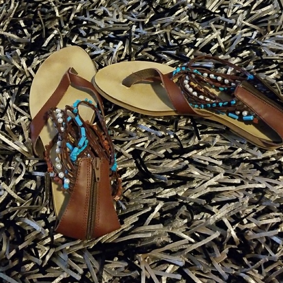 Brown sandals with beaded anklets. From Greece. Lightly worn.