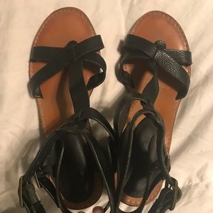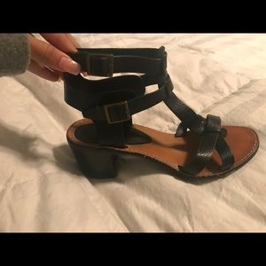 These sandals have a cute small heel. They're different, so I received lots of compliments because no one has seen sandals like these before! Selling because I need to raise money for school.
