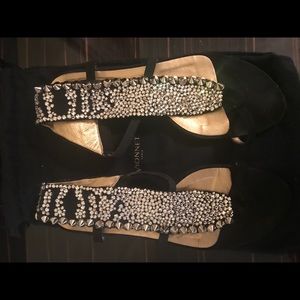 Vionnet Black Velvet Sandals With Swarovski Stones